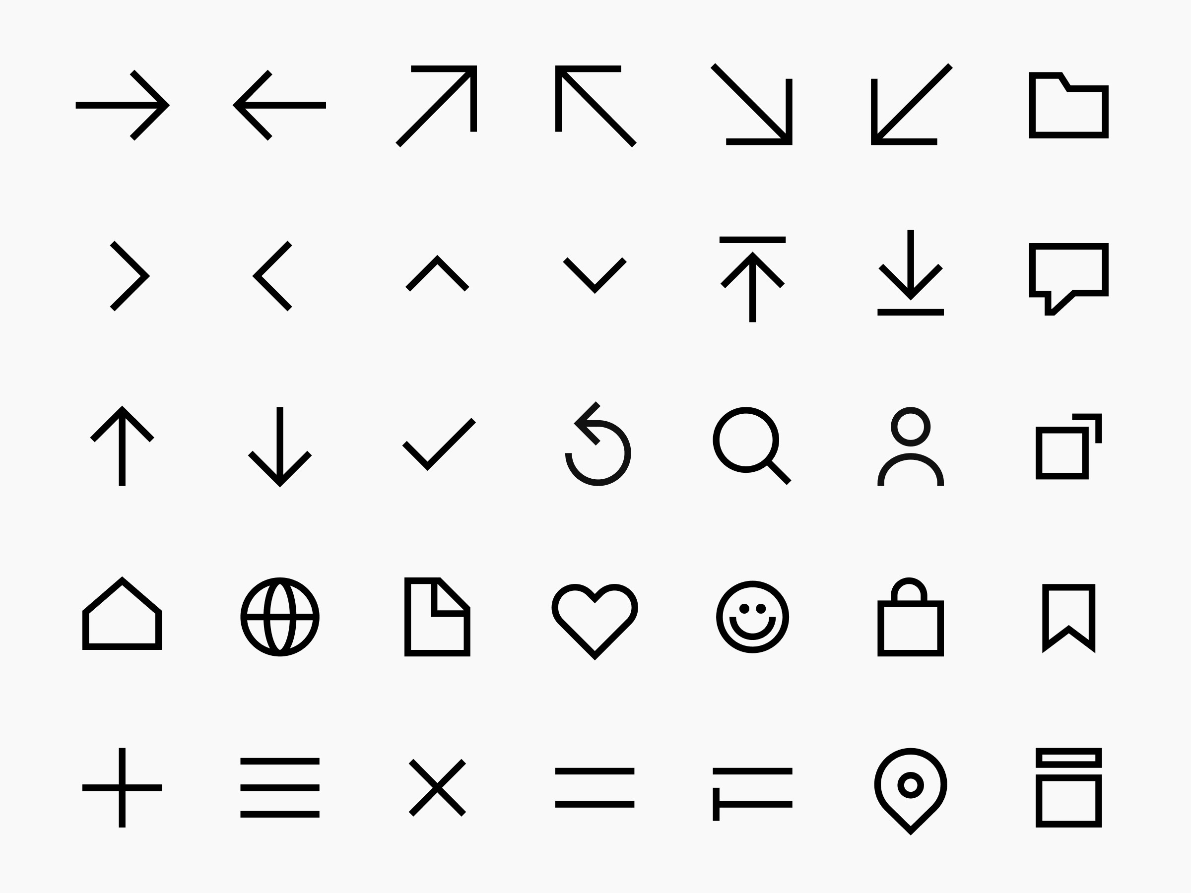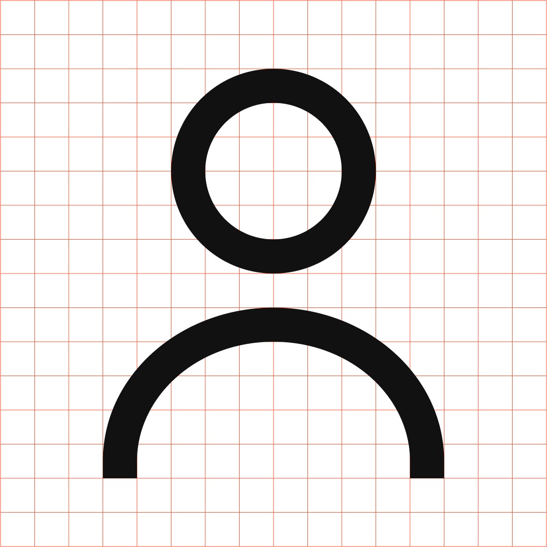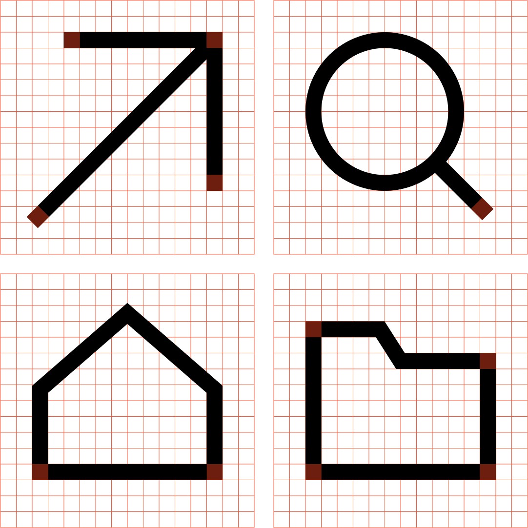 To create consistency, the icons are drawn on a 32x32px grid as a starting point. Always use this grid when creating icons to maintain a consistent and functional look.